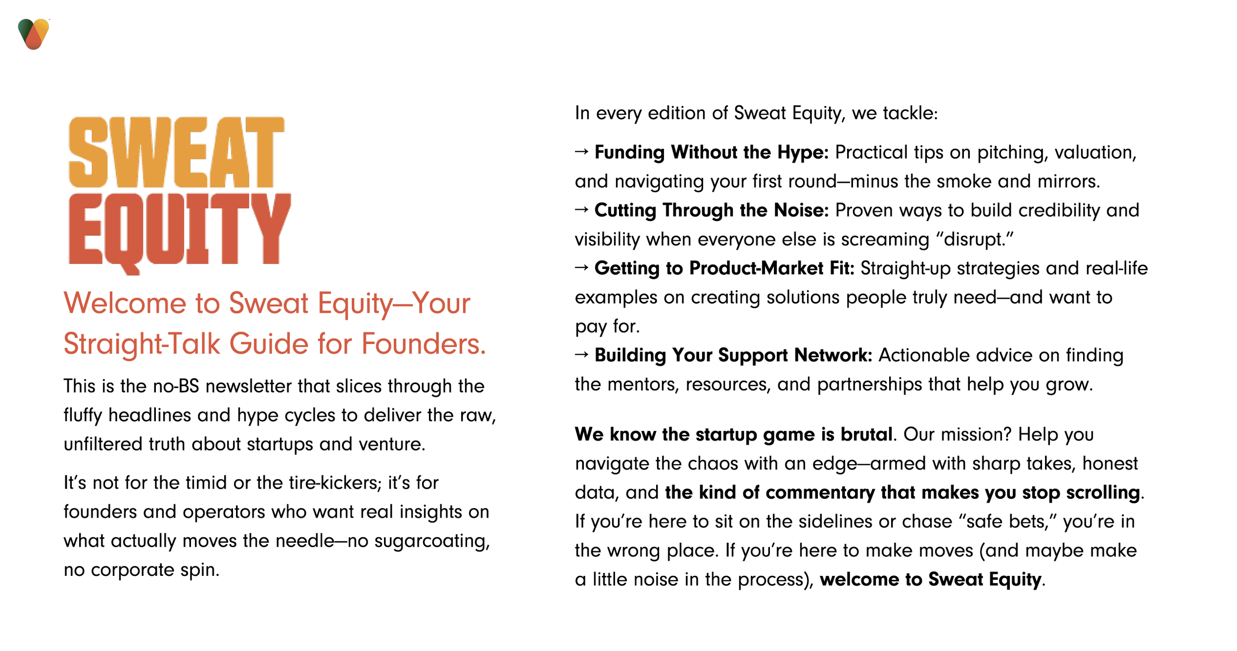 Welcome to Sweat Equity — Your Straight-Talk Guide for Founders.